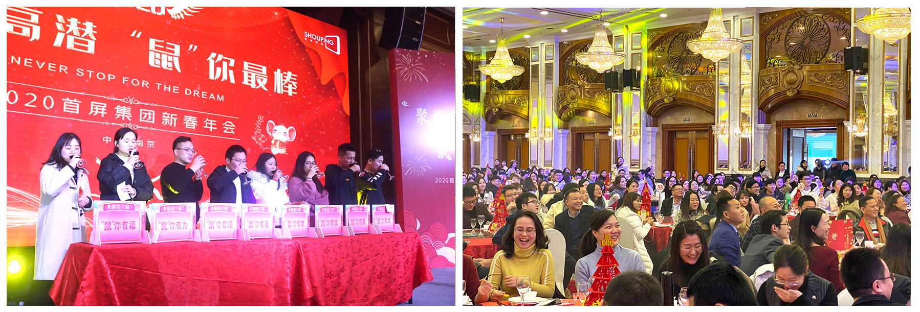 2020年1月19日,“聚焦高潛 鼠你最棒”——2020首屏集團新春年會在維景國際大酒店圓滿落幕!首屏集團南京、南通地區(qū)的近700名同學相聚一堂,共話團圓、喜迎新春。熱鬧喜慶的會場,精彩紛呈的表演、歡樂趣味的游戲、動人心魄的抽獎...讓年會格外熱鬧、驚艷。現(xiàn)場的每個角落都充斥著新春的喜悅,每個人臉上都洋溢著快樂的笑容,每個瞬間都成為大家心中美好的回憶。